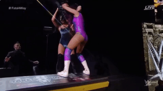 Nikki and Asuka would continue to fight. Nikki used her unpredictability as an asset, flinging her body from the top rope to take down the Iconic Duo. While Asuka was downed by a brutal neckbreaker, Nikki and the Aussies would fight each other, making their way to the commentary booth.