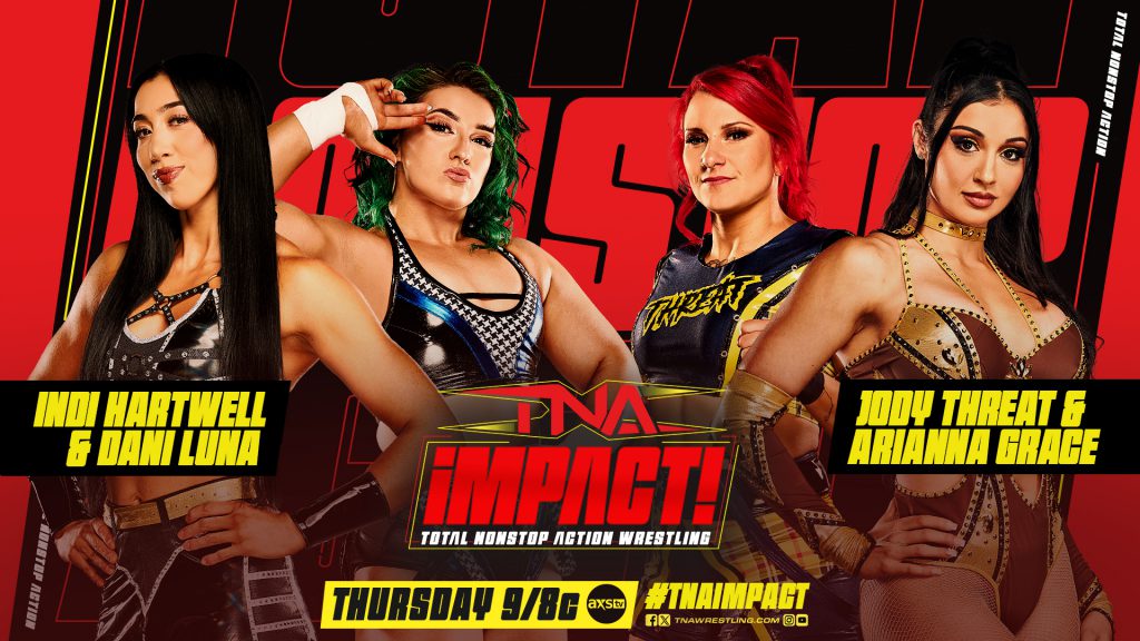 Also set to air tonight is a tag team match that will pair up Dani Luna and Indi Hartwell to take on the team of Jody Threat and Arianna Grace.